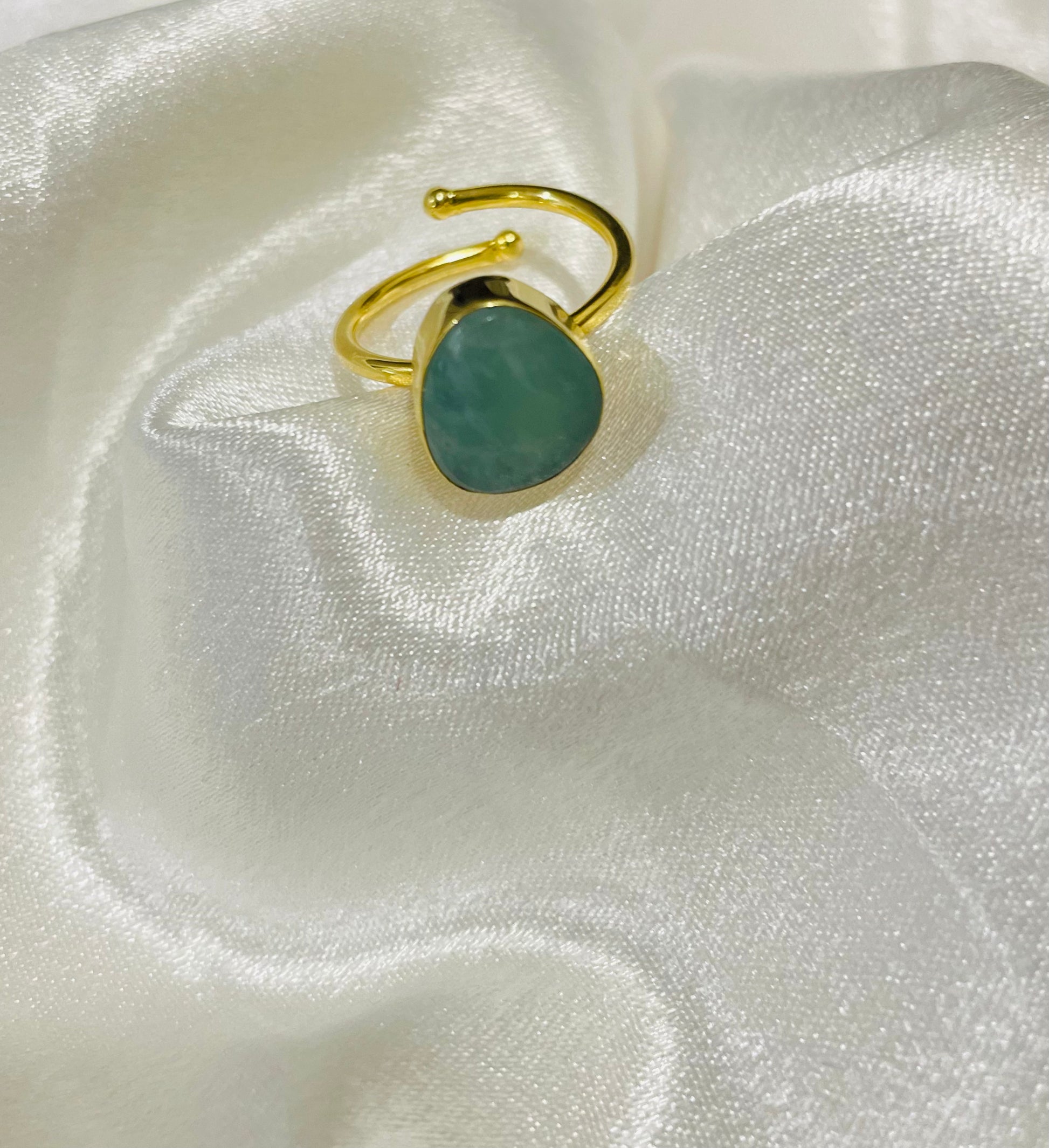 The Amazonite Harmony Ring pairs raw amazonite with a refined 18K gold plated band, radiating serenity and emotional stability. Amazonite empowers clear communication, stress release, and heart-centered truth, making it ideal for personal and professional relationships.