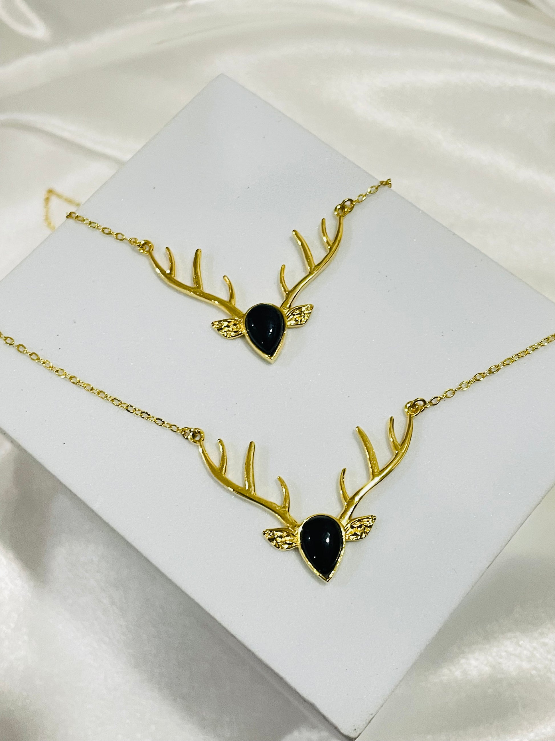 Antler Guardian Black Onyx Pendant in 18k Gold Plated - Strength • Protection • Power