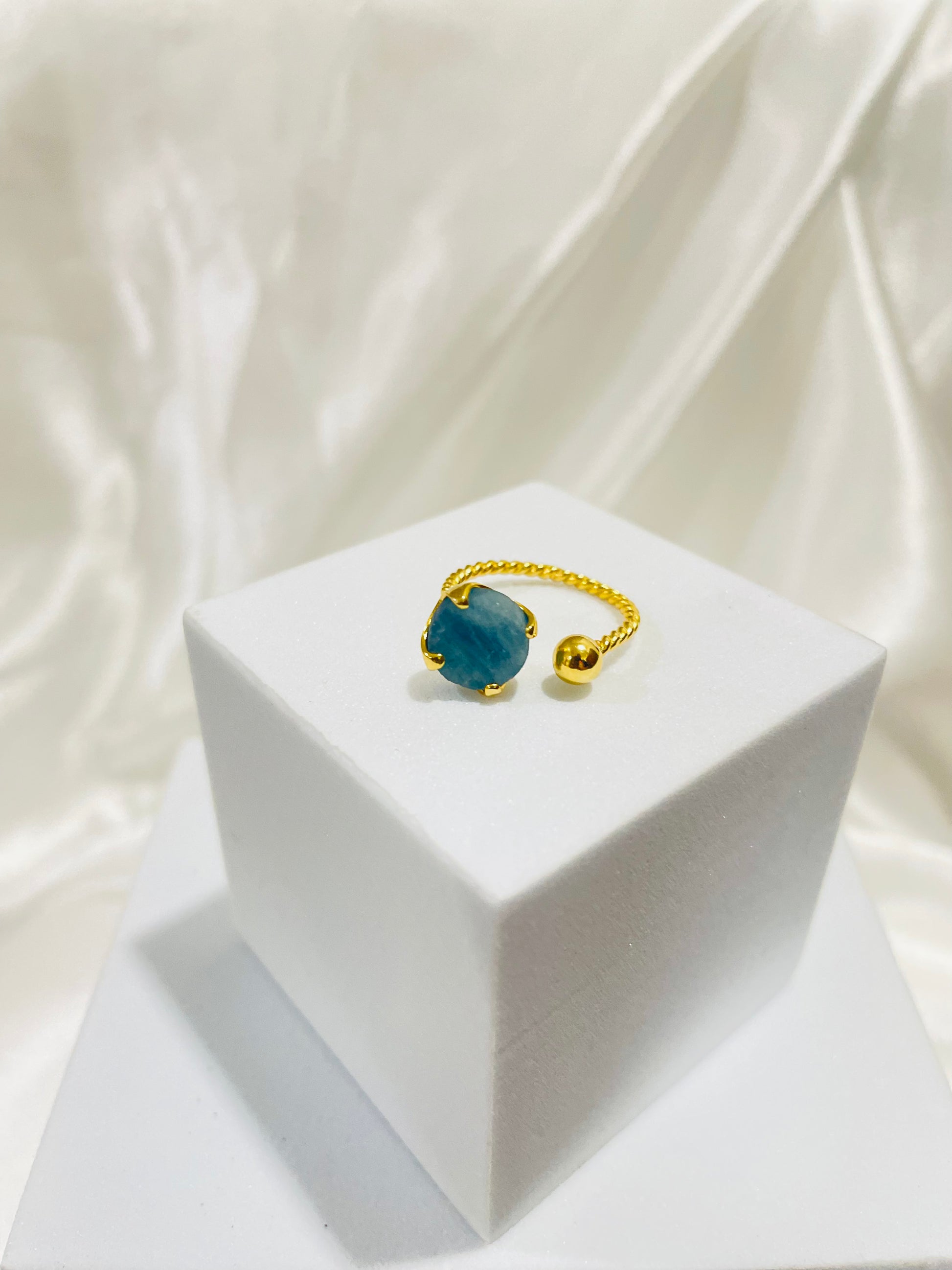 Celestial Aquamarine Cuff Ring in 18K Gold Plated for Calm, Intuition & Emotional Confidence