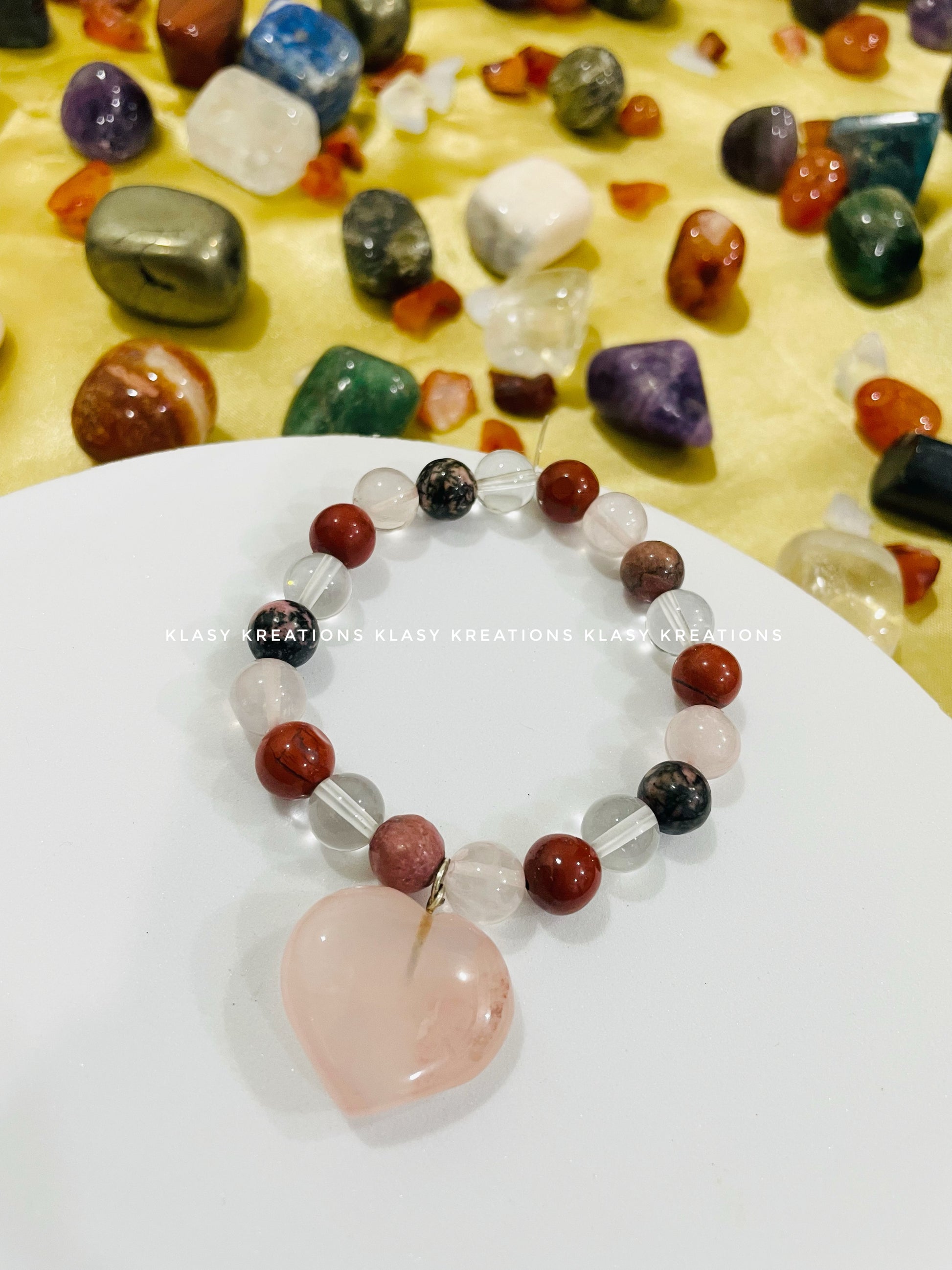 A heart-centered bracelet designed to attract pure love and strengthen existing bonds. It heals emotional wounds, opens your heart chakra, and removes fears around vulnerability. Wear it to invite soulmate energy or to reignite passion and harmony in your relationship.