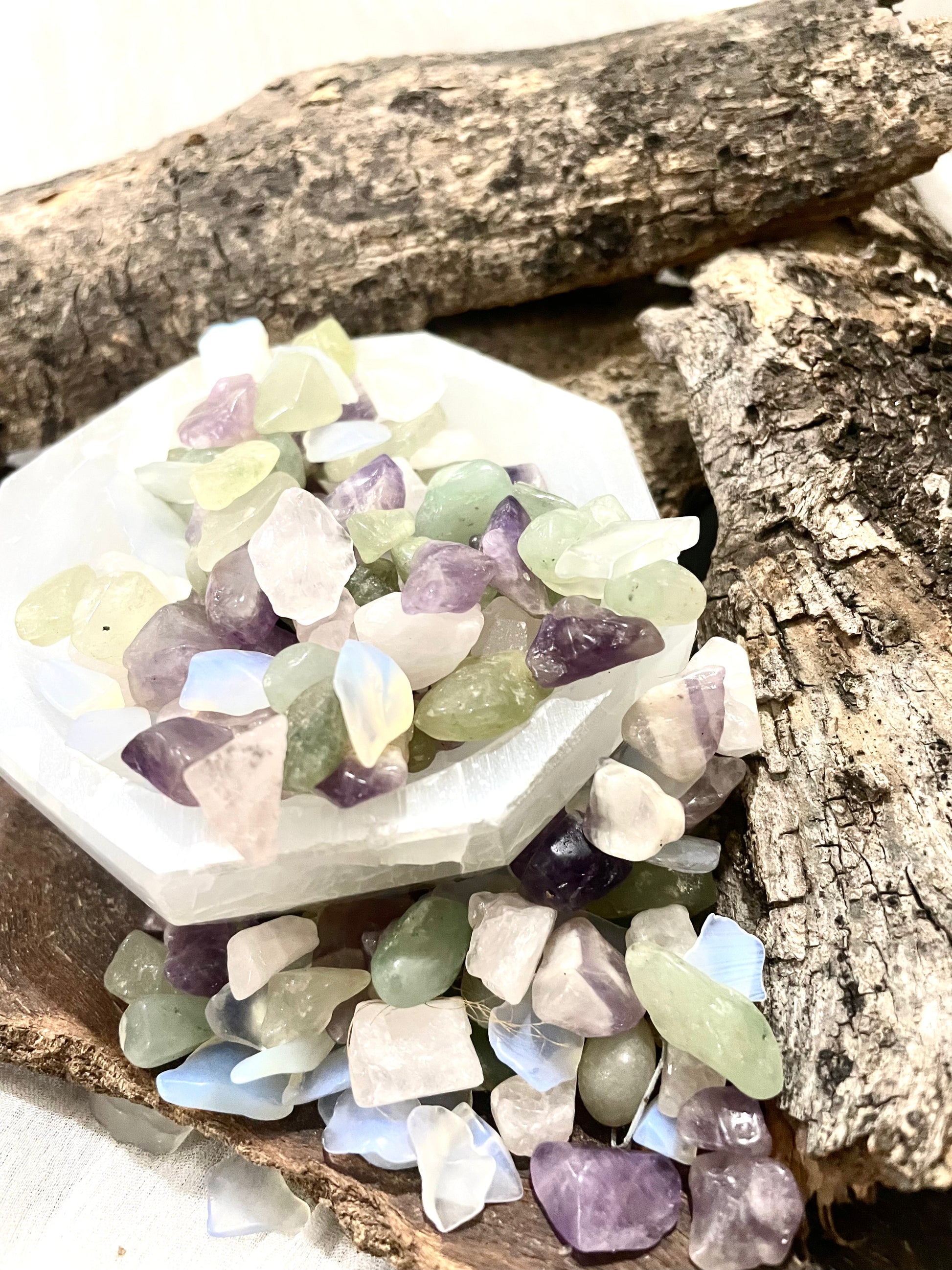 Use them in manifestation rituals by holding a few chips, setting your intention, and visualizing your desired outcome.