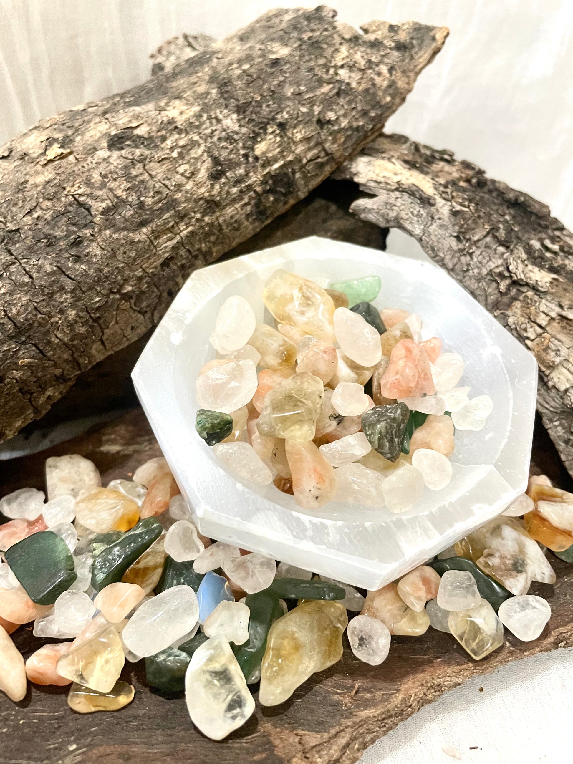 Charge and cleanse your jewellery or crystals by placing them over the chips to amplify their energy and effectiveness.